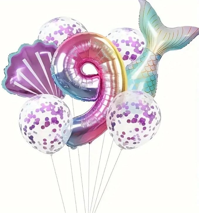 Kızı Kuyruğu Mor Konfetili 9 Yaş Folyo Balon SetUygunluk: 2 adet stokta