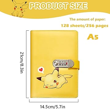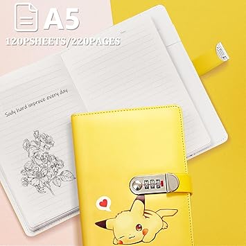 Kızlar ve erkekler için Kilitli Günlüğü, Çocuk Günlük Defteri, Çizgili Şifre Kilitleme Kişisel Planlayıcı Gizli Düzenleyici, Boyut A5 (Sarı)