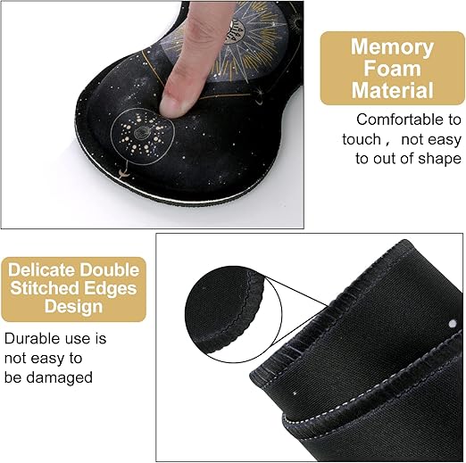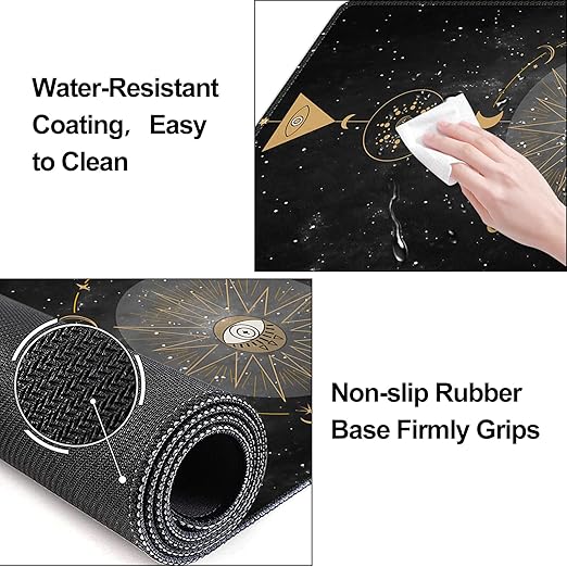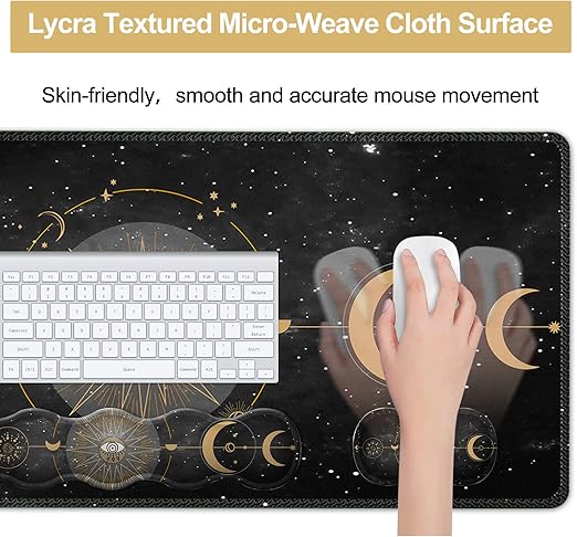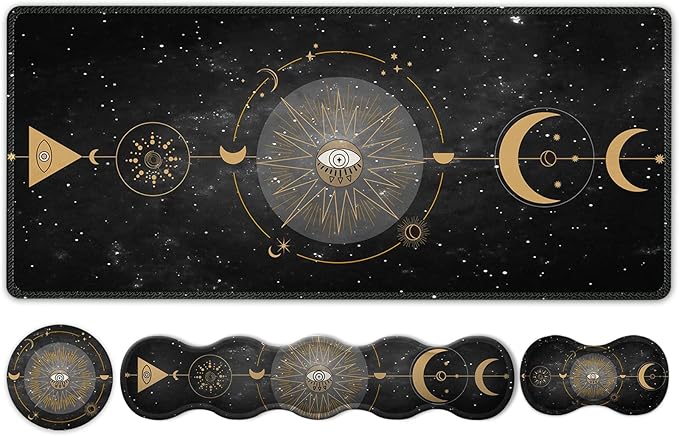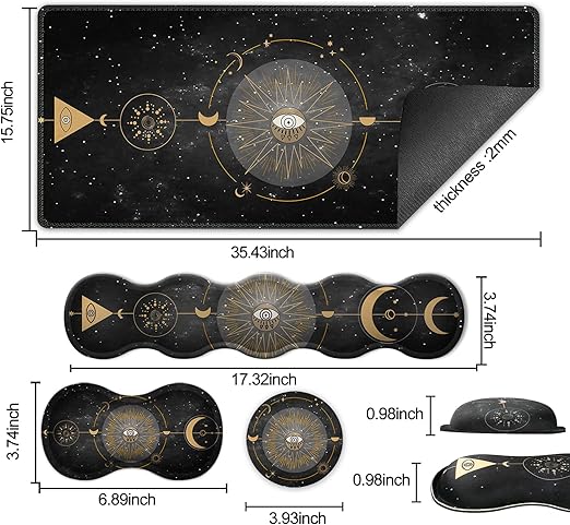 Klavye Mouse Pad Seti, Büyük Oyun Mouse Pad+Klavye Bilek Desteği+Bilek Destekli Fare Altlığı, 90×40 cm Ev Ofis için Masa Paspası, Boho Sun Moon