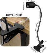 Klipsli E27 lamba tutucu: 2 adet E27 klips ışığı 360° ayarlanabilir kaz boynu, E27 kelepçe lambası anahtarlı ve fişli uzun kablo, siyah (ampulsüz)