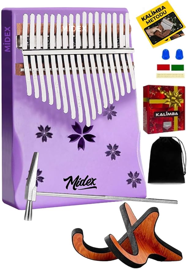 KLX-870-PAK Mor Renk Yüksek Kaliteli Ahşap Kalimba 17 Tuşlu Full Set