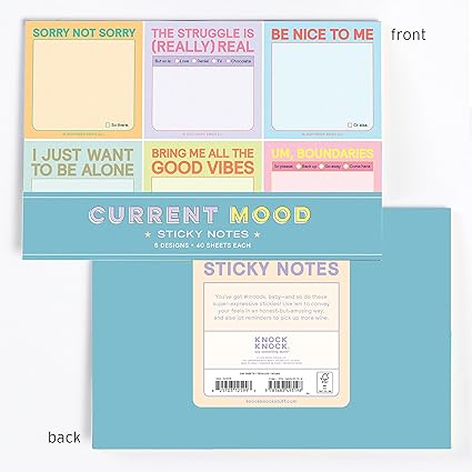 #moods, bebeğiniz var ve bu süper etkileyici Knock Knock Yapışkan Notlar da var! Duygularınızı iletmek için kullanın… veya daha fazla şarap almak için hatırlatıcılar kullanın. Sevimli yapışkan notların ve ev ofis malzemelerinin mükemmel karışımı – tek bir düzenli pakette!
