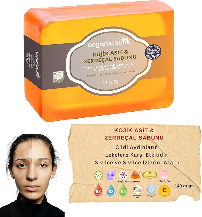 Cildinizi yenileyen ve canlandıran Organicsun Kojik Asit & Zerdeçal Sabunu ile tanışın, doğal güzelliğinizi ortaya çıkarın! ✨