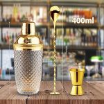 Kokteyl Karıştırıcı, 400 ml Şeffaf Cam Kokteyl Shaker Mikser Seti, Paslanmaz Çelik Ölçüm Kabı ve Kürek, Sızdırmaz Karıştırma Kabı, Ev, Bar, Şarap, Meyve Suları ve İçecekler için, Hediye Kutusunda