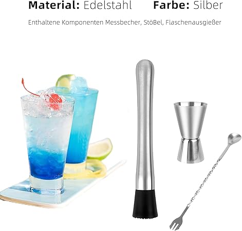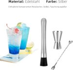 Kokteyl karıştırma kabı seti, 5’li set, kokteyl aksesuarı, paslanmaz çelik, uzun ömürlü bar aletleri, ölçü kabı, bar kaşığı, şişe boşaltıcı, paslanmaz çelik tokmak, kokteyl ölçüm kabı, barmen, mutfak,