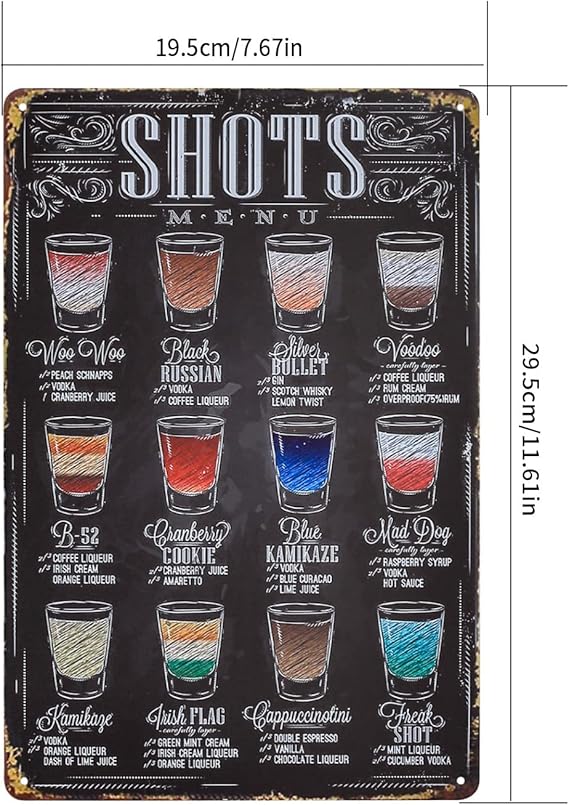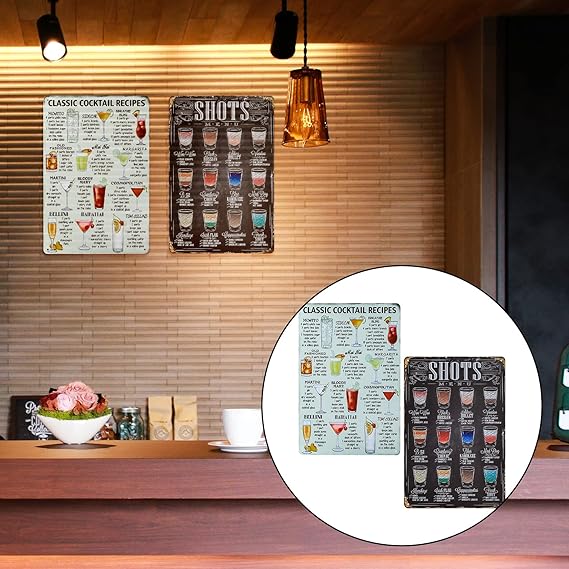 【Teslimat kapsamı】 19,5 x 29,5 cm ölçülerinde 2 adet kokteyl bar tabelası alıyorsunuz, zarif ve kompakttır, bar tezgahları ve duvar dekorasyonu için ideal boyuttadır.