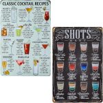Kokteyl Tabelaları, 2 Adet Kokteyl Tarifi Tabelası, 19,5 x 29,5 cm Retro Bar Sac Levha, Metal Levha, Menü, Vintage Kokteyl, Metal Poster, Kafe, Bar, Pub, Mutfak Dekorasyonu için