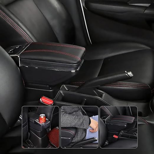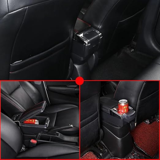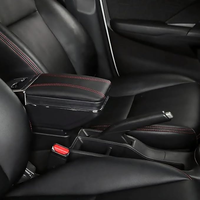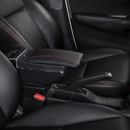 Kol Dayama Kol Desteği Kırmızı Dikişli Siyah Kolçak Orta Konsol Ayarlanabilir Yapay Deri Konforlu Saklama Kutusu Küllük Su Bardağı Tutucu Üniversal Uyumlu