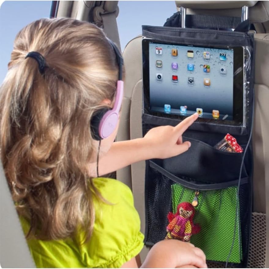Araç Koltuk Arkası Tablet Tutucu 3 Cepli Eşya Düzenleyici Organizer. Su geçirmez kumaştan üretilmiştir