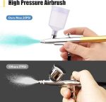 【5 Seviyeli Ayarlanabilir Hava Basıncı】 Airbrush kiti, farklı püskürtme hassasiyeti ihtiyaçlarınızı karşılamak için 5 seviyeli ayarlanabilir hava basıncını destekler. Daha yüksek basınç, geniş bir da daha ağır bir kaplamayı daha hızlı bir şekilde sunabilir.