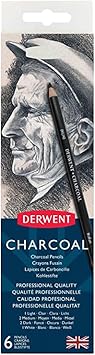 Kömür Kalemleri, Çizim ve Yazma, 6’lı Set, Açık, Orta, Koyu ve Renkli Kömür, Karıştırma ve Bulaşma için İdeal, Kalemtıraş Dahil, Profesyonel Kalite, 0700838