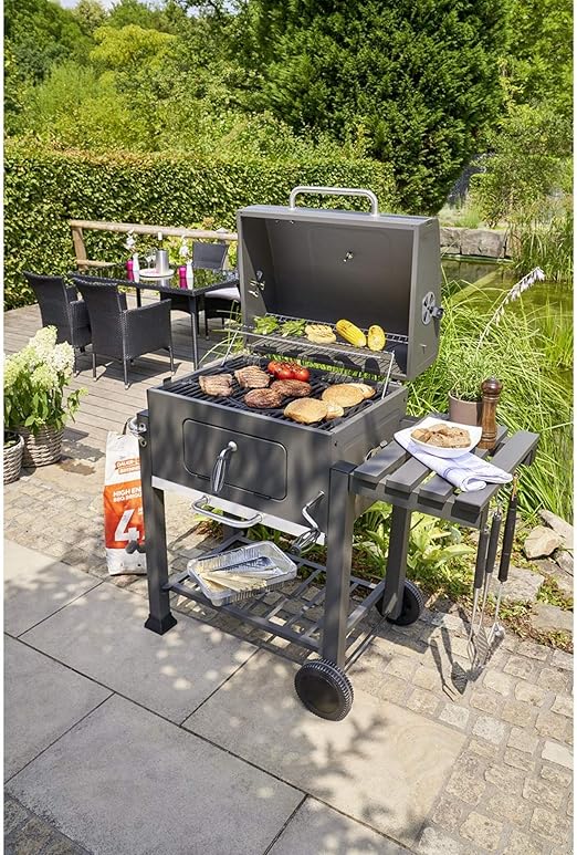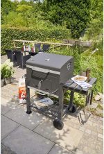Kömürlü Mangal Fırınlı Büyük Barbekü Termometreli Tekerlekli