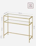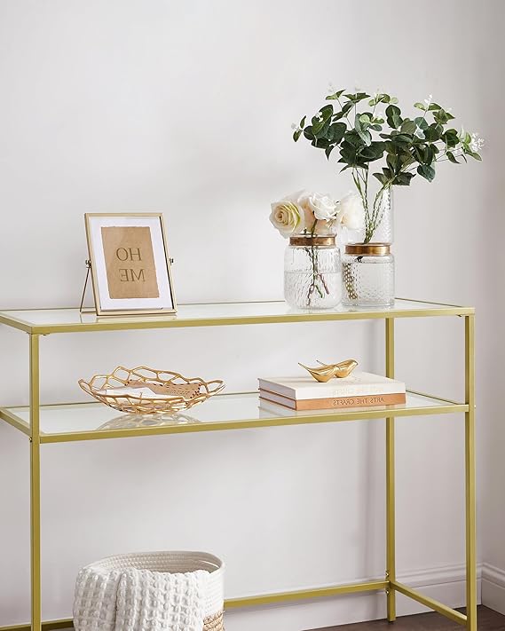 Konsol Sehpası, Yan Sehpa, Sert Cam Yüzey, Modern Koltuk Sehpası, Kolay Kurulum, Ayarlanabilir Ayaklar, Oturma Odası, Koridor, Altın Rengi Şeffaf LGT025A01