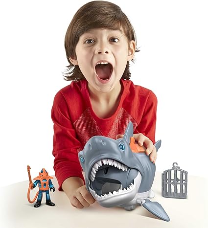 Büyük köpek balığı oyuncağı, dalgıç figürü, dalış kafesi ve diğer aksesuarla
