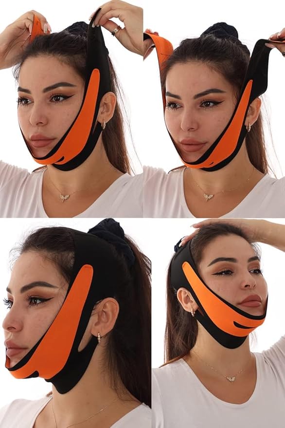 Korsesi Çene Boyun Bandı Horlama Önleyici Gıdı Yanak Gıdık Toplama (SİYAH-TURUNCU, TEK EBAT)