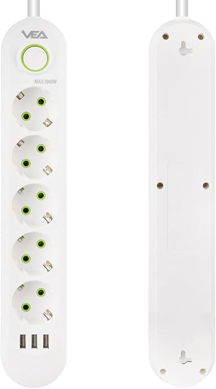 Korumalı Priz, 5’li Çoklu Priz, 3 Usb, 1.5 Mt Kablo, Anahtarlı Grup Priz, Usb Li Priz, Isıya Dayanıklı, 3000 Watt Gücünde