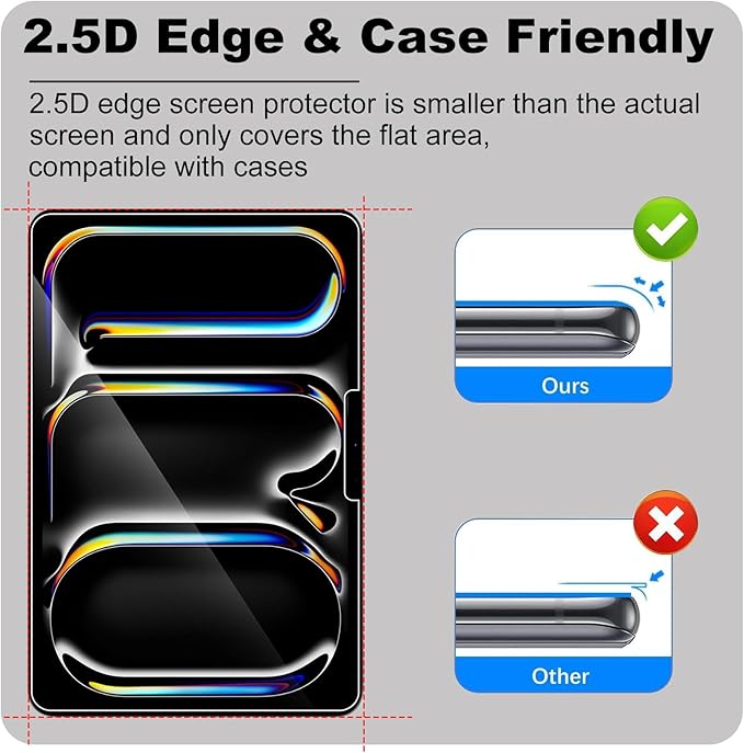 UYUMLULUK: Profesyonel kavisli tasarım, camın kenarı, kullanımı rahat ve parmaklarınız olan 2.5D radyan ile tasarlanmıştır. Hassas kesim boyutu iPad Pro 13 İnç M4 (2024) için maksimum koruma sağlar.