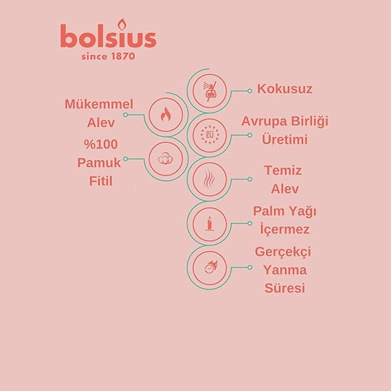 Palm ve Hayvan Yağı İçermez: Çevre dostu bir tercih olan Bolsius mumları, palm ve hayvan yağı içermez.