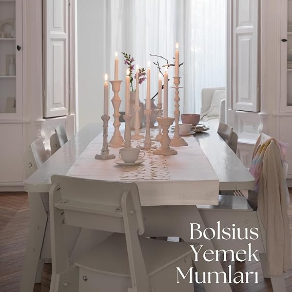 Bolsius pürüzsüz akşam yemeği sütun mumu, 24,5 cm boyu ve 7,5 saatlik yanma süresine sahiptir.