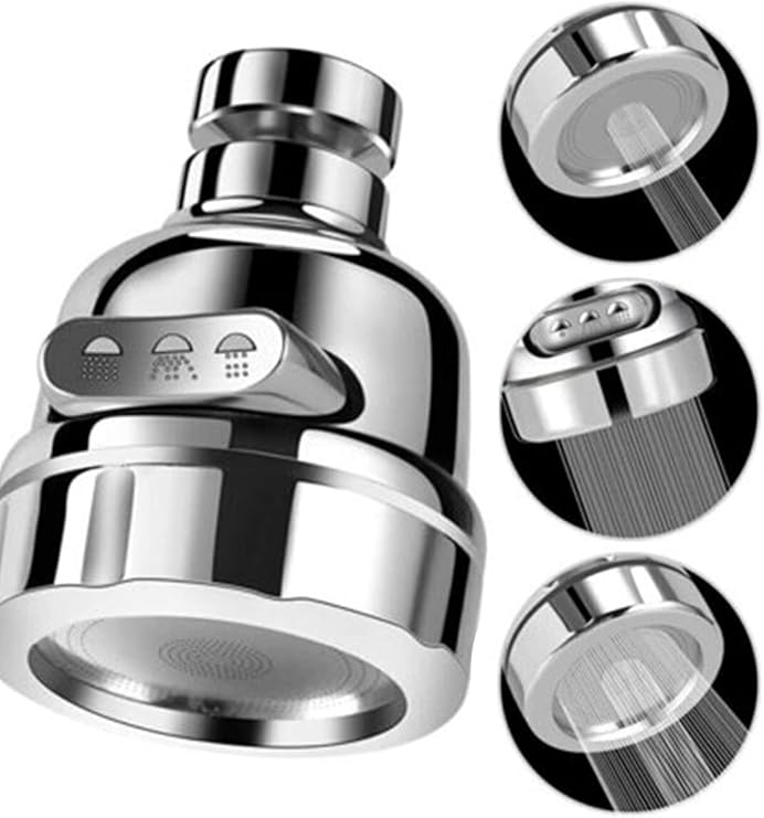 Mobee Krom 3 Fonksiyonlu Mutfak Lavabo Başlığı 360 Derece Döner Musluk Ucu Kireç Tutmaz 1410