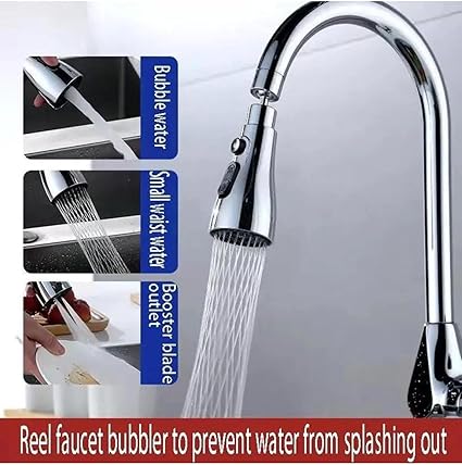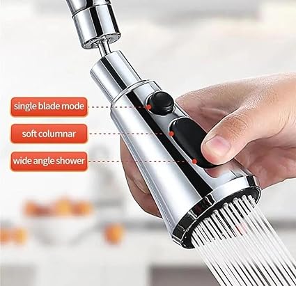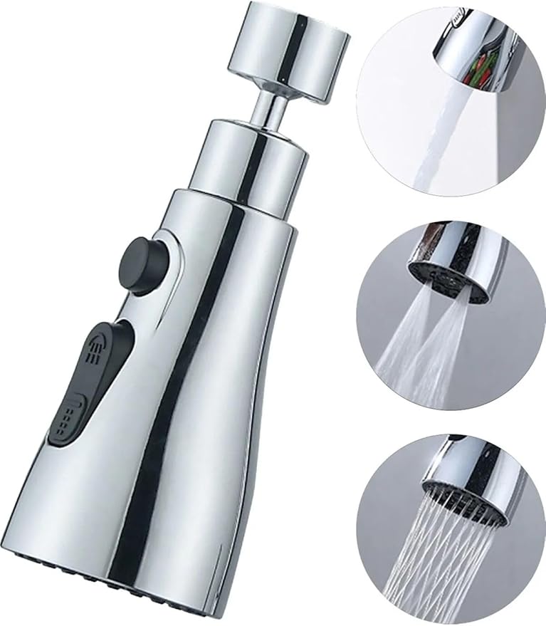 Krom 3 Fonksiyonlu Mutfak Lavabo Başlığı, 720 Derece Döner, Su Tasarruflu, Şık ve Dayanıklı Tek Musluk Ucu