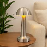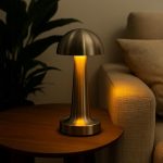 Krom Dokunmatik Şarjlı Masa Lambası – LED Işıklı, 3 Renk Modu (6500K-3200K-Amber), Dimlenebilir, USB Type-C Şarjlı, Taşınabilir Modern Tasarım, Yatak Odası, Ofis, Kafe ve Restoran Kullanımı