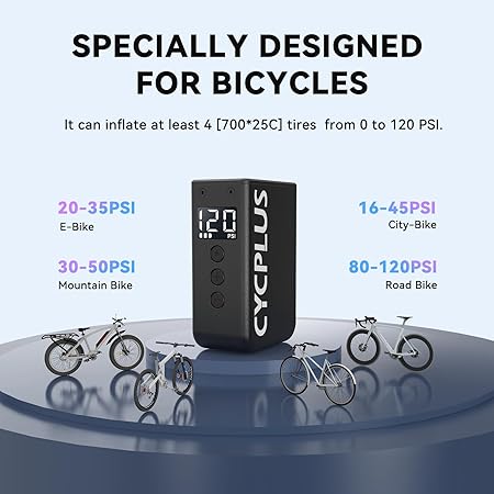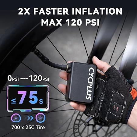 【Güçlü Enflasyon】Kompakt boyutu, yıldırım hızındaki performansına inanıyor. Maksimum hava basıncı 120 PSI ile, 700 x 25C lastiğin (80-100 PSI) doldurulması sadece 25 saniye ve bir yol bisikleti lastiğini şişirmek için sadece 75 saniye (0-120 PSI) sürer. Esas olarak bisiklet enflasyonuna odaklanır ve E-Bisiklet, Dağ Bisikleti, Şehir Bisikleti ve Yol Bisikleti için daha profesyoneldir.