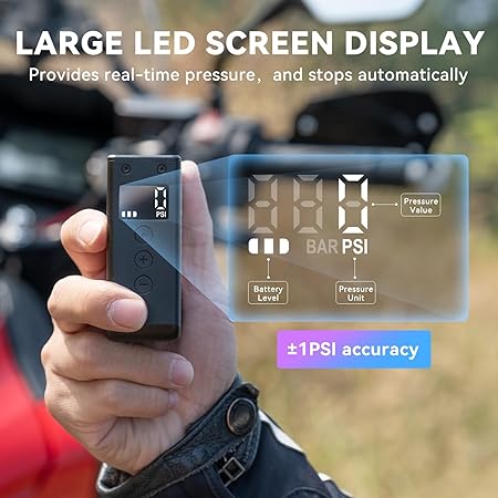 【Otomatik Kapanma】Basınç göstergesi fonksiyonlu LED büyük ekran, ± 1 PSI ölçüm hassasiyeti ile önceden ayarlanmış basınç değerlerinin ve gerçek zamanlı basınç değerlerinin kolay okunmasını sağlar. İstenilen basınç ayarlandıktan sonra, bu bisiklet lastiği şişirici kalan görevleri otomatik olarak tamamlayacak ve hedef basınca ulaşıldığında otomatik olarak duracaktır.