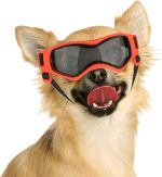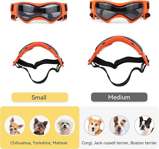 Küçük köpekler için köpek gözlüğü, UV koruması, köpek güneş gözlüğü, ayarlanabilir lastik bantlı, rüzgar geçirmez, köpek motosiklet gözlüğü, turuncu