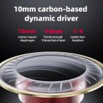 10 mm dinamik karbon bazlı dinamik sürücü – Mühendislerimiz, mükemmel ses veren dinamik bir sürücü oluşturmak için FH15 ve FF5 gibi üst düzey IEM’lerde bulunan malzemeleri kullanmaya karar verdi ve bu da karbon bazlı bir diyafram dinamik sürücüsü ile sonuçlandı. Diyaframın malzemesi dinamik bir sürücünün sesi için kritik öneme sahiptir ve karbon bazlı malzeme diyafram için idealdir – alüminyumdan, berilyumdan ve diğer malzemelerden daha hafiftir ve çeliğin dokuz katı gerilme mukavemetine sahiptir. Karbon bazlı diyafram, sürücü hareketi sırasında kırılma sayesinde hızlı geçişleri minimum bozulma ile kolayca idare edebilen son derece duyarlı ve ayrıntılı bir sürücü ile sonuçlanır.