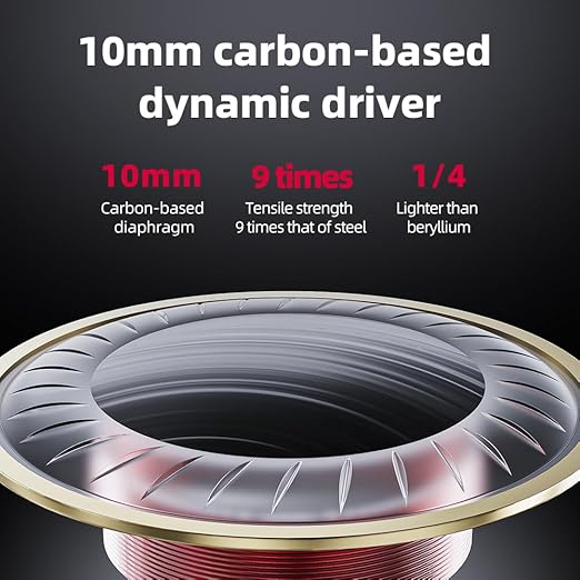 10 mm dinamik karbon bazlı dinamik sürücü – Mühendislerimiz, mükemmel ses veren dinamik bir sürücü oluşturmak için FH15 ve FF5 gibi üst düzey IEM’lerde bulunan malzemeleri kullanmaya karar verdi ve bu da karbon bazlı bir diyafram dinamik sürücüsü ile sonuçlandı. Diyaframın malzemesi dinamik bir sürücünün sesi için kritik öneme sahiptir ve karbon bazlı malzeme diyafram için idealdir – alüminyumdan, berilyumdan ve diğer malzemelerden daha hafiftir ve çeliğin dokuz katı gerilme mukavemetine sahiptir. Karbon bazlı diyafram, sürücü hareketi sırasında kırılma sayesinde hızlı geçişleri minimum bozulma ile kolayca idare edebilen son derece duyarlı ve ayrıntılı bir sürücü ile sonuçlanır.