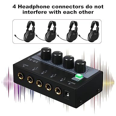 The headphone splitter/amplifier /mixer is ideal for use in both the home and professional environment. Perfect for podcasting, video gaming, streaming, and choirs.