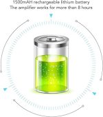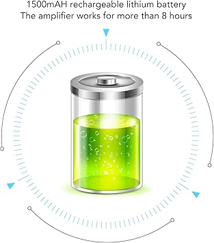 Şarj Edilebilir Lityum Pil: 1500mAH şarj edilebilir lityum pil ile donatılmış bu kulaklık amplifikatörü 8 saatten fazla çalışabilir. Ek olarak, ses düzeyinin uygun şekilde ayarlanması için bir ses düzeyi kontrol düğmesi bulunur.