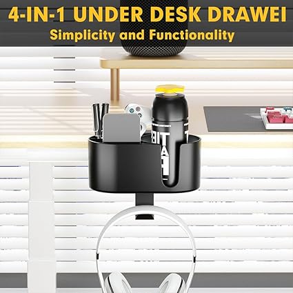 Bardak Tutucu: Saklama tepsisi kulaklık kancalarını, bardak tutucularını ve saklama tepsilerini bir araya getirerek masanızın altında küçük eşyaları saklamanıza, bunları ve rahat tutmanıza ve üstü alanınızı artırmanıza olanak tanır
