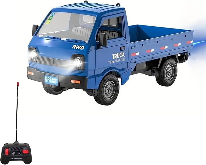Kumandalı RC Kamyonet, Işıklı, Buhar Atan, Şarjlı İş Makinesi Araç Yük Taşıma Aracı Kamyonet (Mavi)