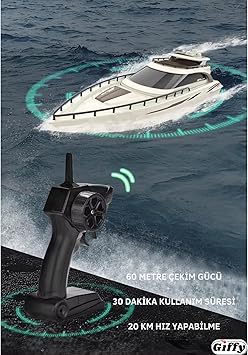 Uzaktan Kumandalı Tekne RC, Çift Motor 2.4G, 20 Km Hız Yapabilen, Full Fonksiyon ve Dayanıklı Şaft Gelişmiş Uzaktan Kumanda: 2.4G teknolojisi ile kesintisiz ve güçlü sinyal, aynı anda birden fazla tekne kullanımı mümkündür.