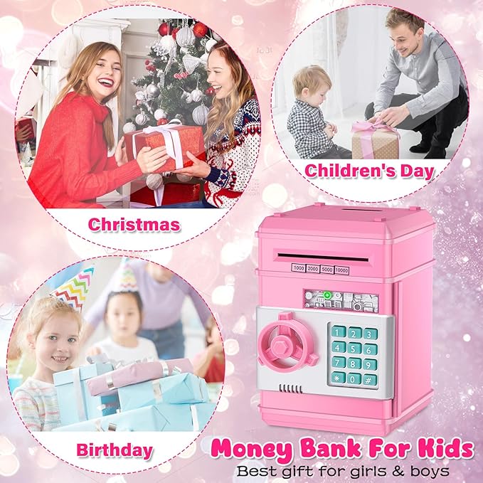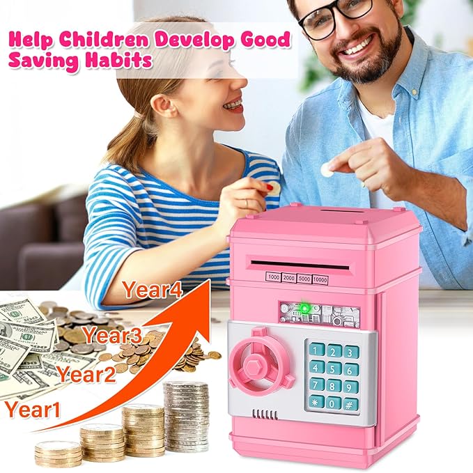 【Tasarruf alışkanlıkları ve ideal hediyeler geliştirin】Çocuklar bu çocuk kumbarası ile planlı şekilde paradan tasarruf edebilirler, bu da çocukların para biriktirmeye alışmalarına yardımcı olabilir. Kumbara güzel bir renk kutusu ile teslim edilir. Çocuk kumbarasını doğum günü, çocuk günü, Noel, cadılar bayramı, şükran günü vb. gibi tatillerde veya önemli günlerde çocuğunuz için hediye olarak kullanabilirsiniz. Özellikle 4-12 yaş arası erkek ve kız çocukları için uygundur.