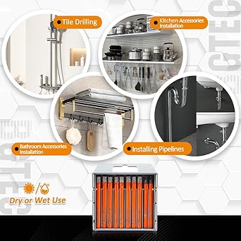 Kuru Elmas Matkap Uçları Seti – 5 adet 1/4 “Karo Matkap Uçları ve Granit Mermer Porselen Seramik için 5 adet 1/4” Karbür Matkap