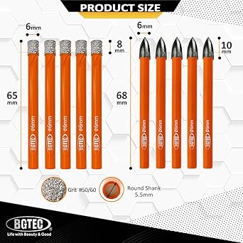 【Boyut】Toplam 10 adet, 5 adet kuru elmas matkap ucu (1/4 inç 6 mm), yuvarlak sap ve 5 adet Karbür Matkap ucu (1/4 inç 6 mm).