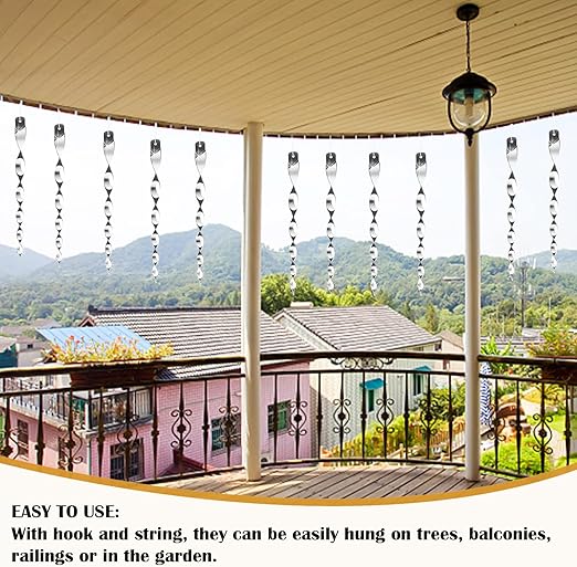 Paket içeriği: Set 2 reflektörlü kuş korkutucu askı ve 2 adet yansıtıcı rüzgar spiral kuş korkuluğundan oluşur.