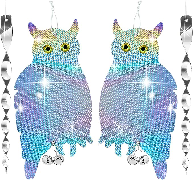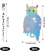 Kuş kovucu, reflektörlü baykuş, kuş korkuluğu, baykuş, balkon 2 adet, asılı baykuş, kuş kovucu, baykuş şeklinde, çift taraflı yansıtıcı rüzgar spirali, kuş kovucu, evler, bahçeler, avlular için