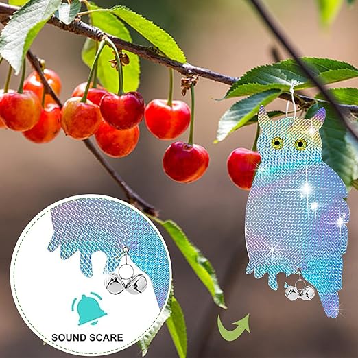 Çift taraflı yansıtıcı ve çan: Yansıtıcı tasarımı sayesinde yüksek parlaklık. Kuşları korkutmak için çift taraflı yansıtıcı çanlı baykuş folyo.