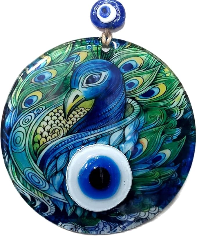Nazar Boncuklu Tasarım: 12 santimetre çapında duvar süsü, tavus kuşu nazar boncuklu tasarımı ile özelleştirilmiştir.