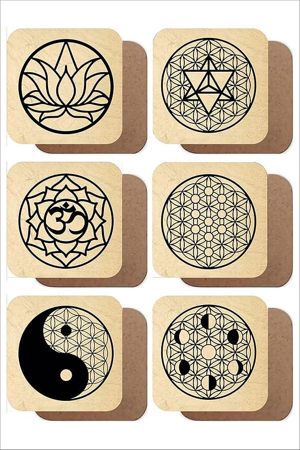 Kutsal Geometriler Temalı 6’lı Ahşap Bardak Altlığı Seti UNTNM729