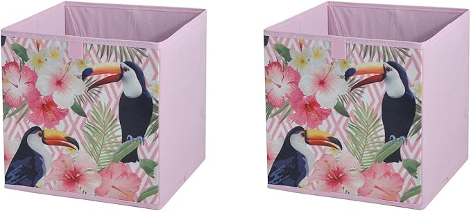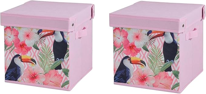 KUTUSU SETİ,KAPAKLI KUŞ VE BAHAR DESEN KUMAŞ 2 ADET 28X28X28CM