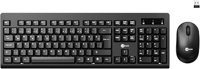 KW210 Kablosuz Türkçe Q Klavye & Mouse Set – QWERTY Türkçe Dizilim Klavye, 1000DPI Optik Fare, Win/Mac Uyumlu, Sıvı Dökülmesine Dayanıklı, Tam Boyutlu Türkçe Q Klavye Mouse Seti Siyah