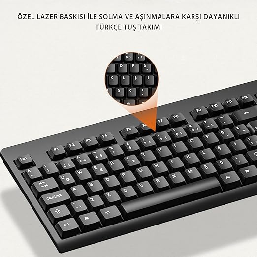 【Evrensel Uyumluluk ve Kullanım Kolaylığı】Windows veya Mac işletim sistemleriyle uyumlu olan set, her türlü bilgisayar ortamında sorunsuzca çalışır. Klavye ve Mouse’u kullanmaya başlamak için sadece USB alıcısını takmanız yeterlidir.