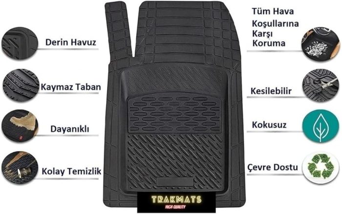 Aracınızın zeminini su, kum ve yol tozu gibi dış etkenlerden korur. Temizlenmesi kolaydır, Yıkanabilir.Hava ısısının sıfırın altında olduğu derecelerde bile kıvrılmaz çatlamaz sertleşmez.