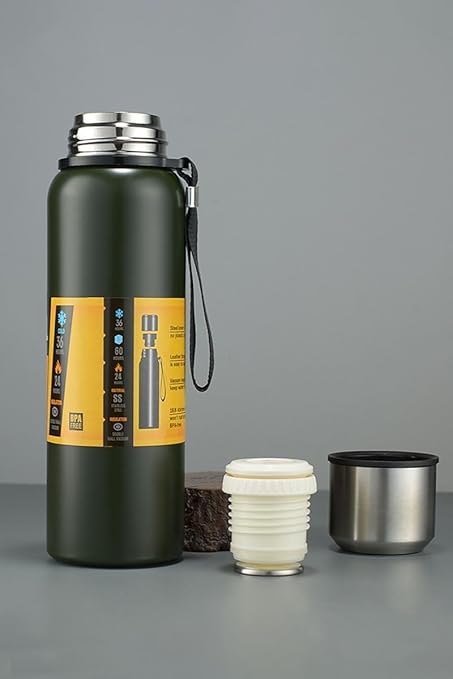 L Çelik 750 ml Yeşil Kamp Piknik Termos Tutmalı Termos cin491ys