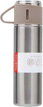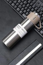 L Çelik Bej 500 ml Bardaklı Kahve Termos Mug cin408bj